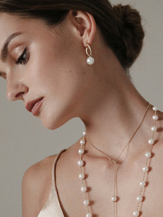 EYECATCHER fehér arany fülbevaló déltengeri gyönggyel és onixszal