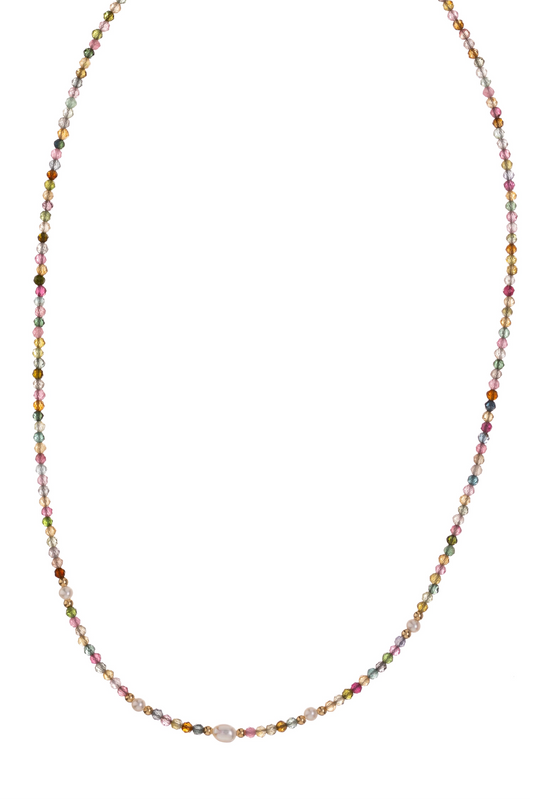 18 karátos arany nyaklánc turmalinokkal és gyöngyökkel díszítve