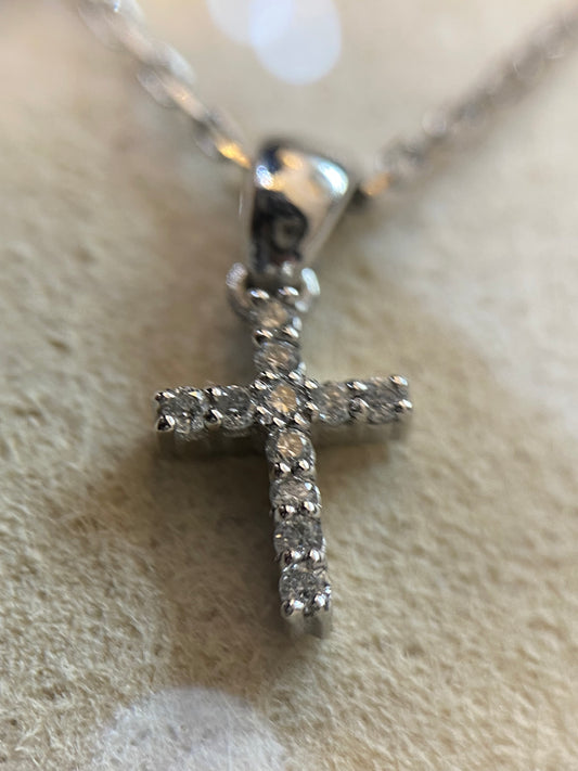 Fehér arany gyémánt kereszt lánc