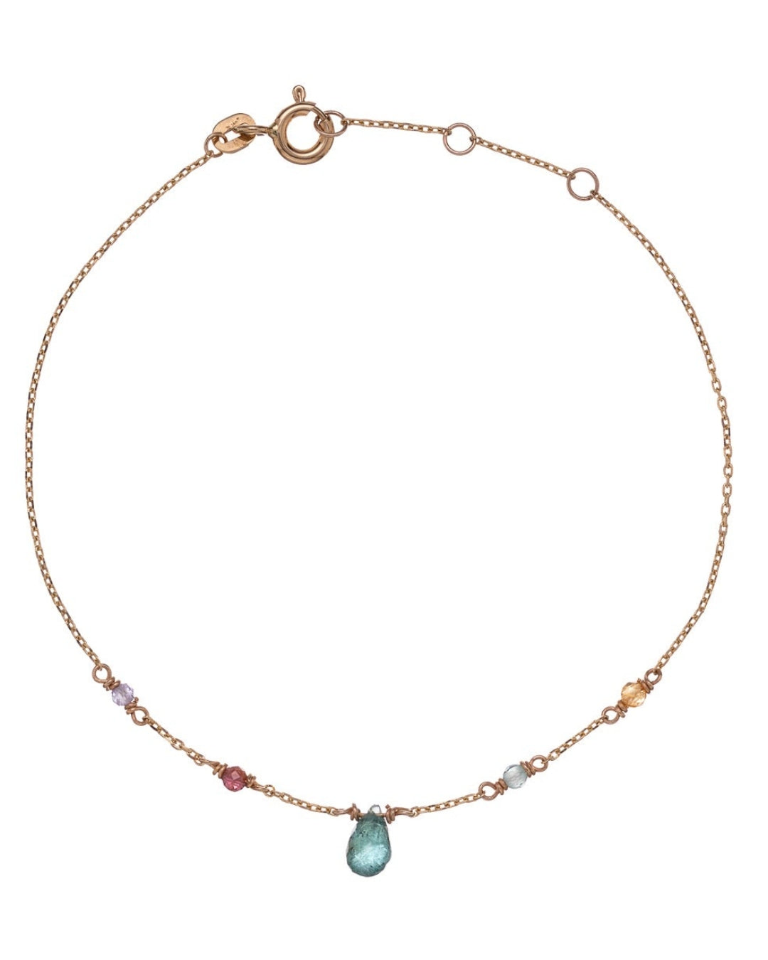 18 karátos arany karkötő turmalin kövekkel.