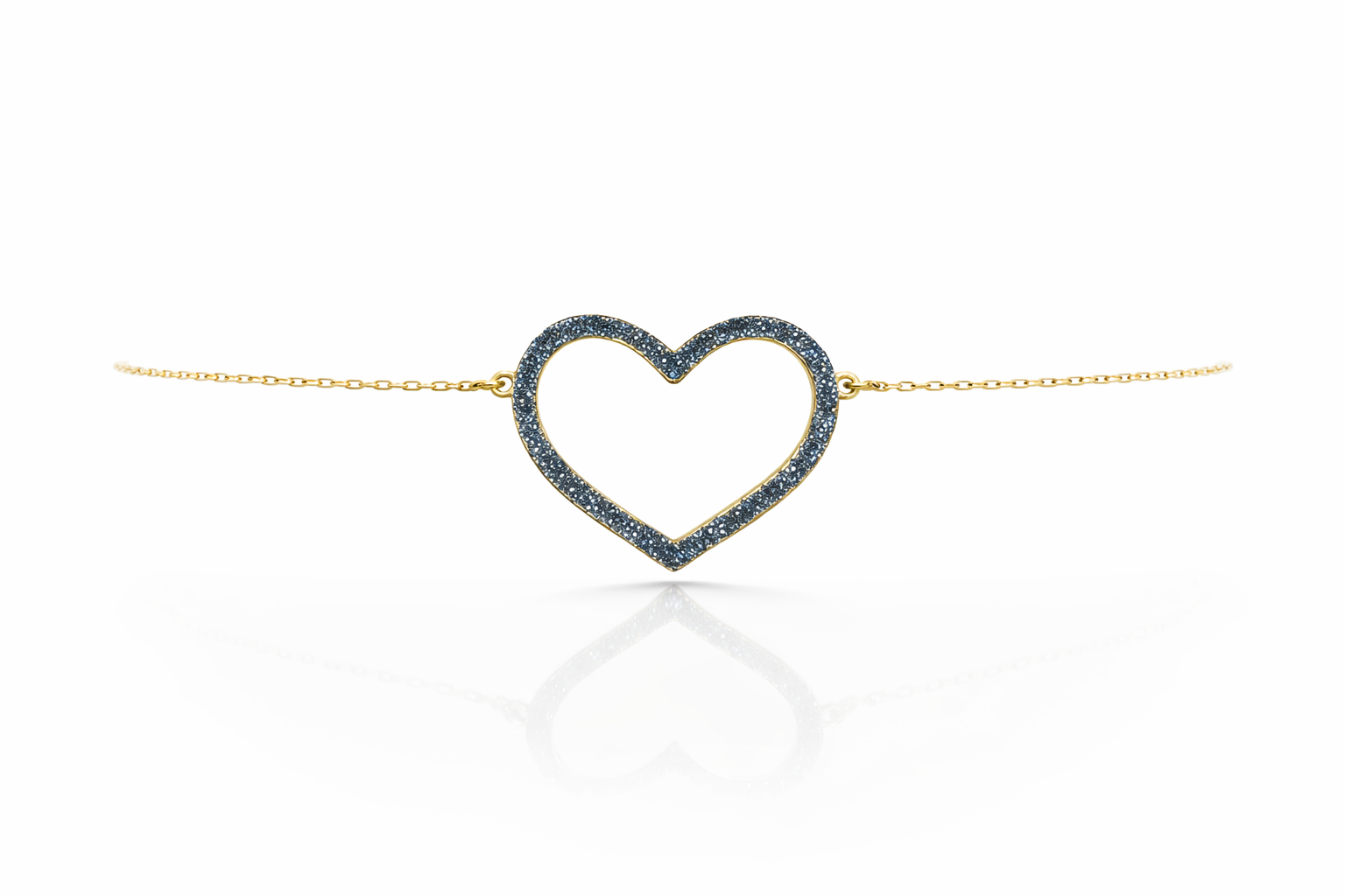 18 karátos sárga arany karkötő, középen kivágott szívvel, égkék gyémántporral díszítve.