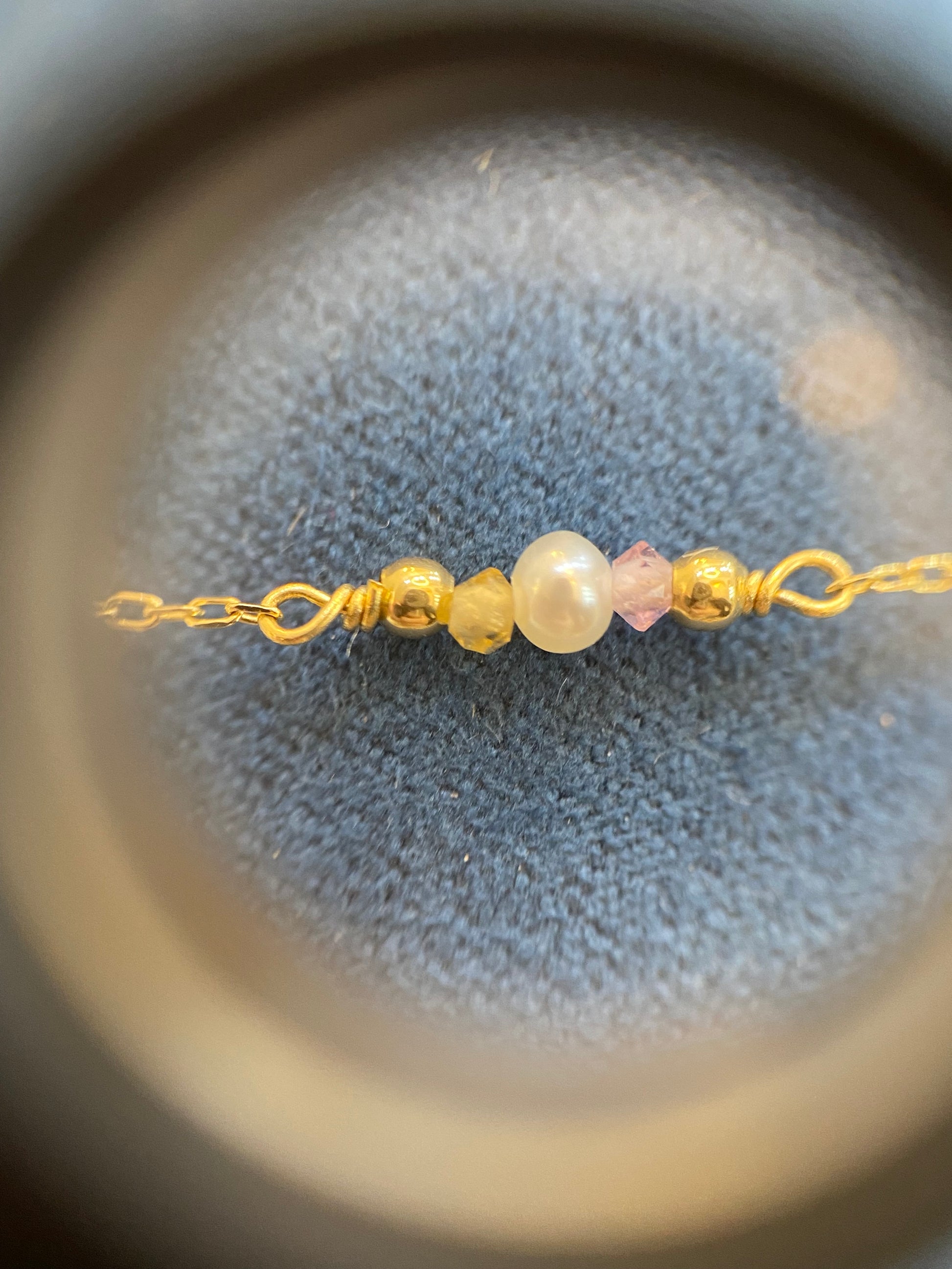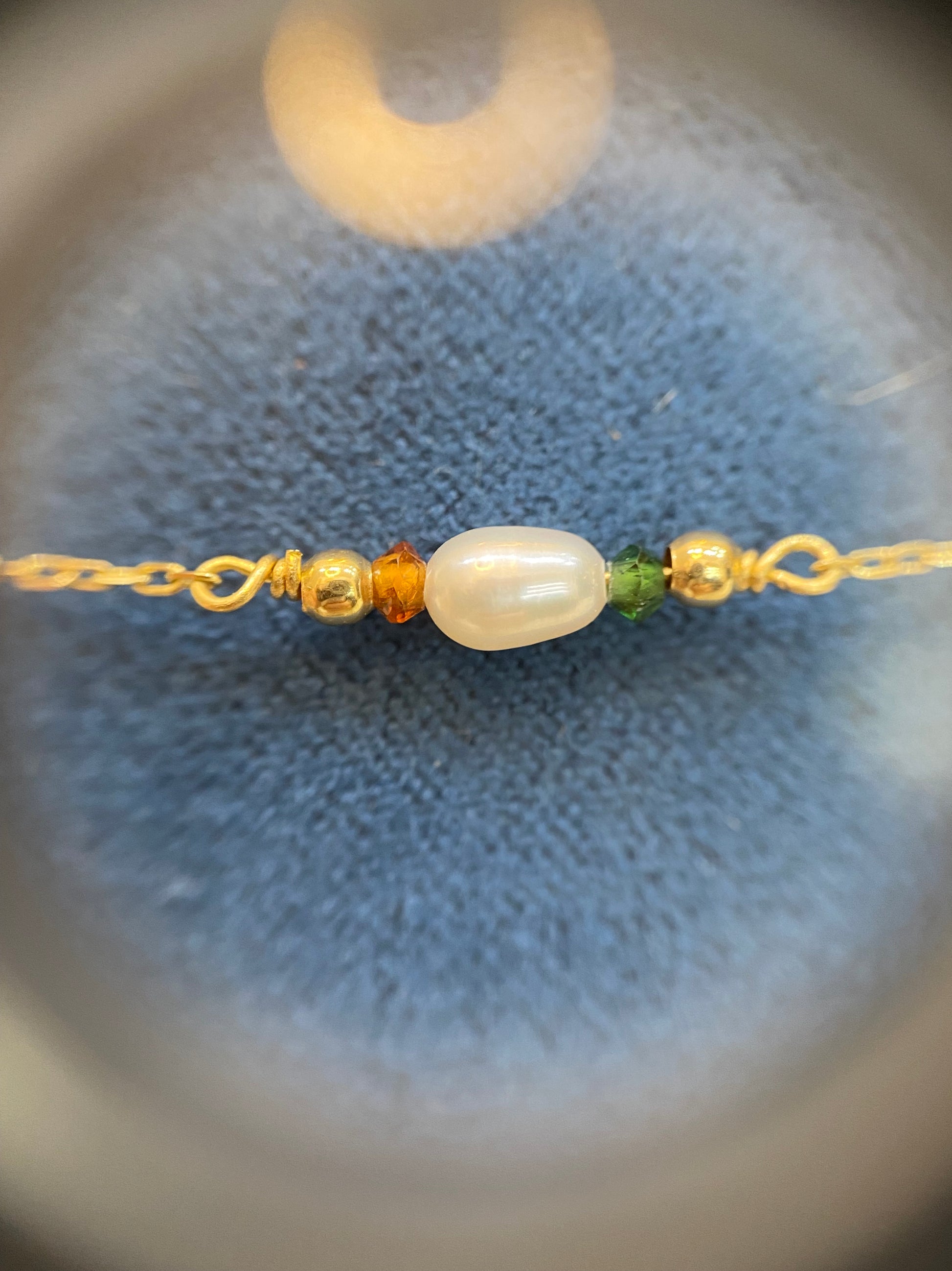 18 karátos arany nyaklánc turmalinokkal és gyöngyökkel
