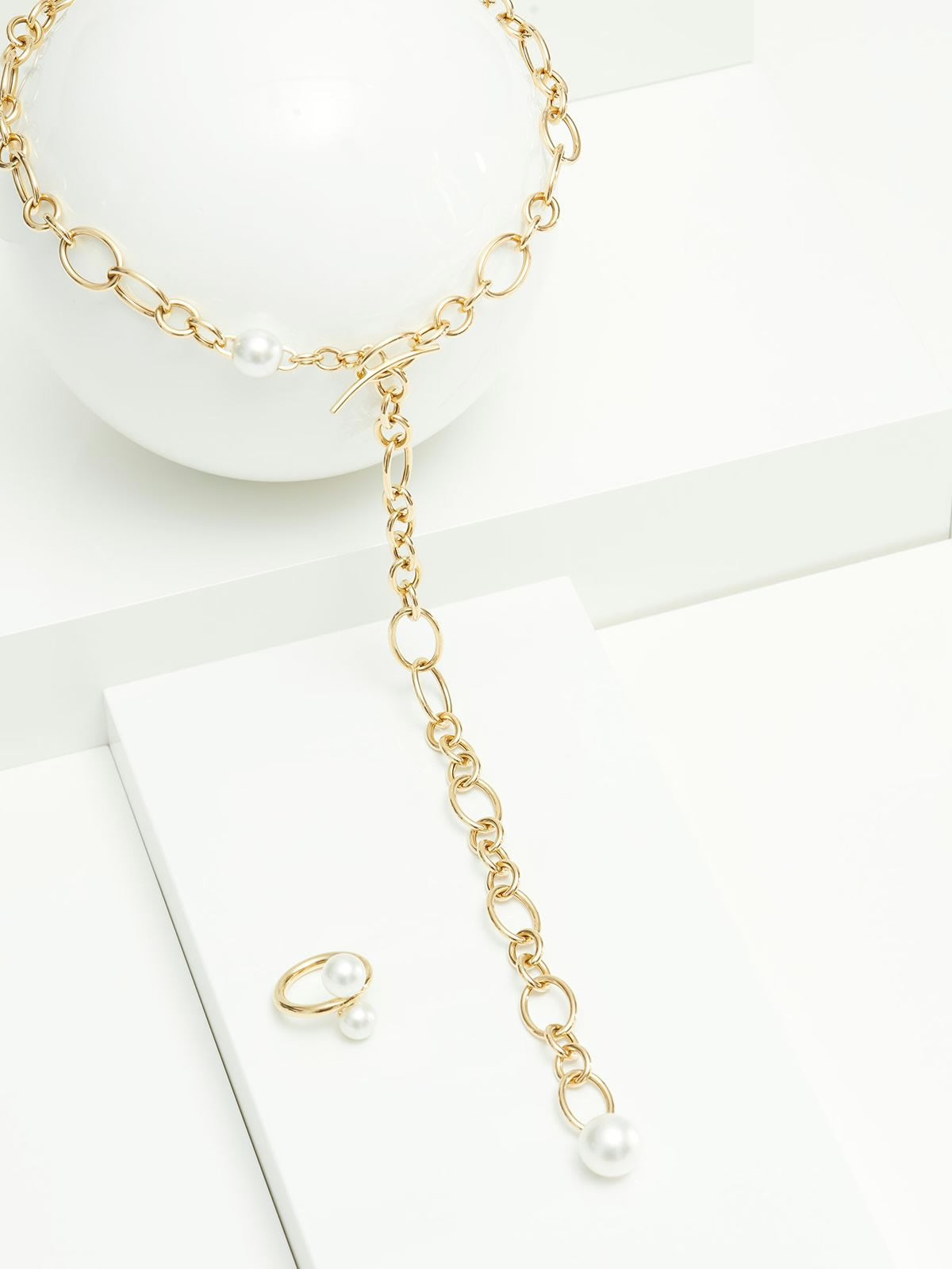 A nyaklánc végén elhelyezett, nagyméretű dél-tengeri gyöngy a kompozíció hangsúlyos eleme, amely modern, mégis időtlen eleganciát kölcsönöz ennek a különleges ékszernek.