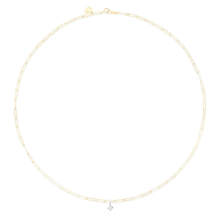 Finom, ultrakönnyű láncból készült nyaklánc 18 karátos aranyból, 0,05 ct fehér gyémánt medállal.