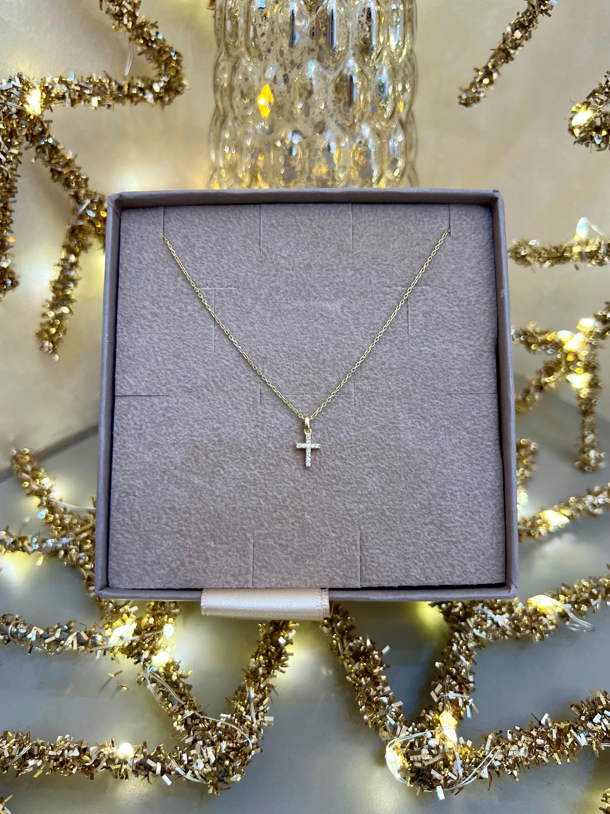 Sárga arany gyémánt kereszt lánc