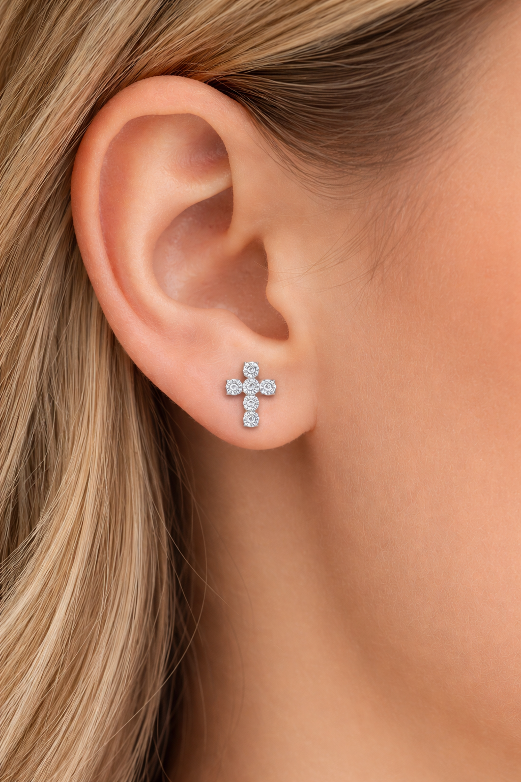 Studex kereszt 14 kt fehér arany fülbevaló