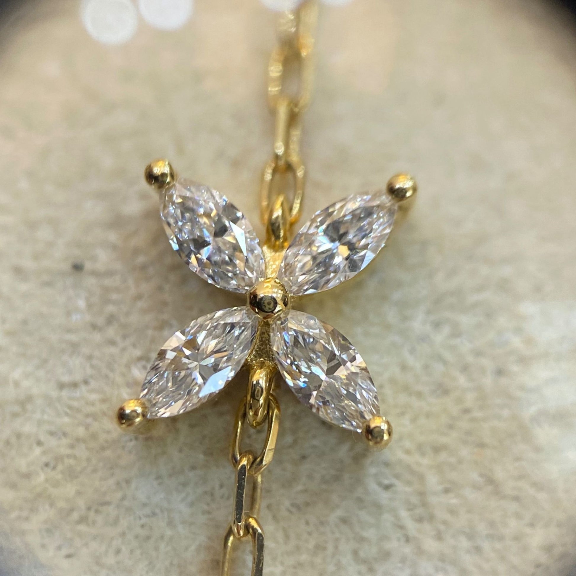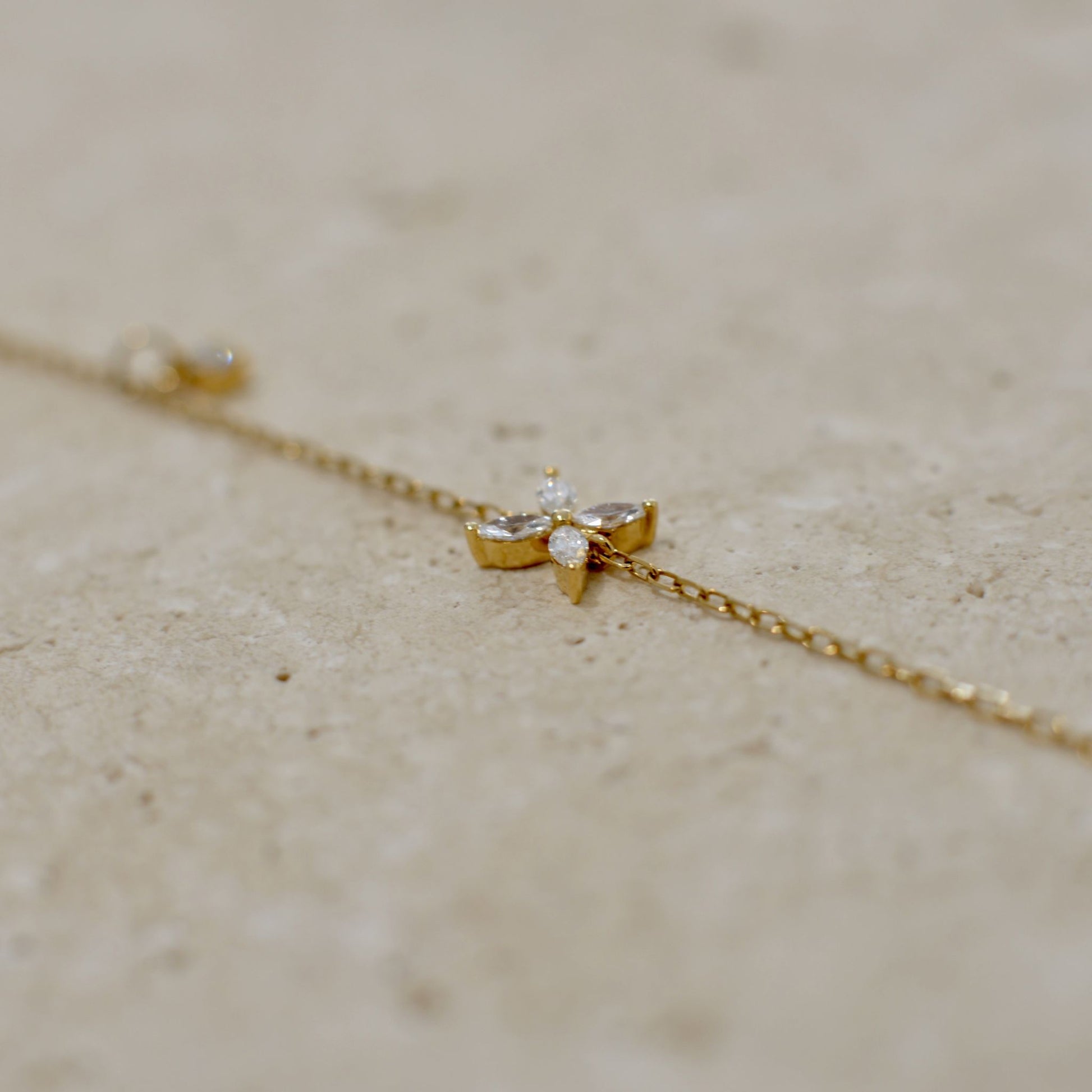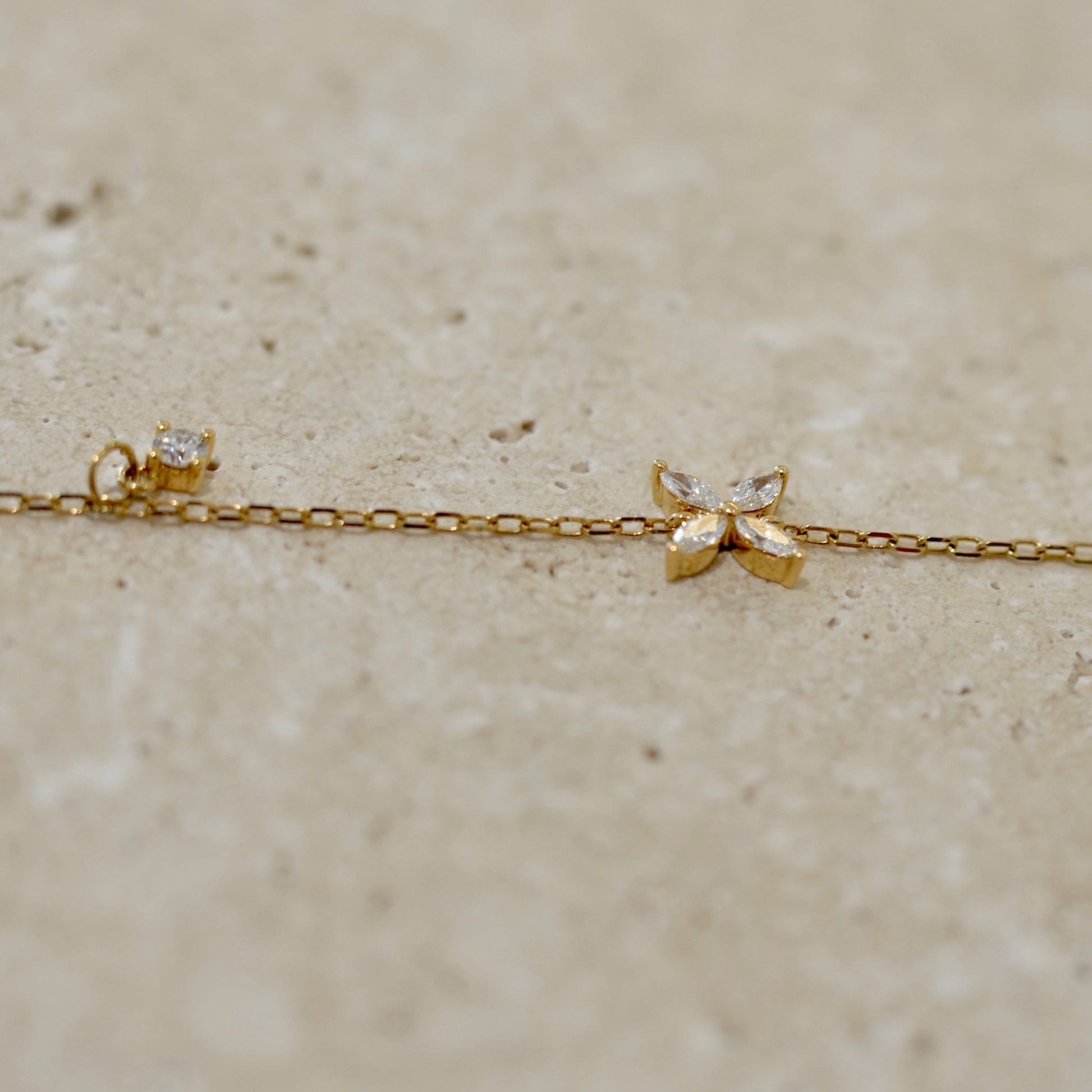 Sárga arany virág karkötő, gyémánt kövekkel.