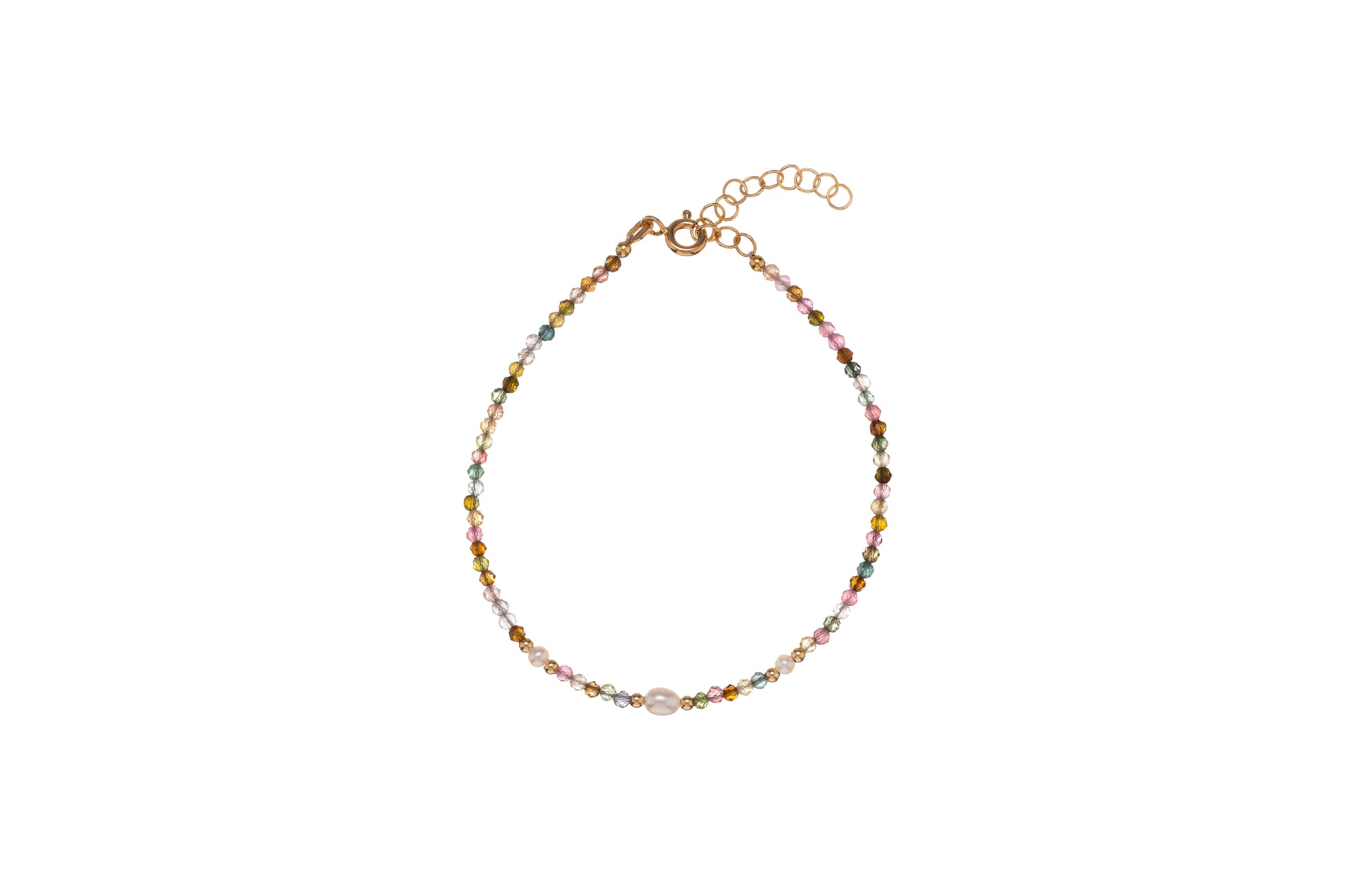 18 karátos arany karkötő turmalin kövekkel és gyöngyökkel