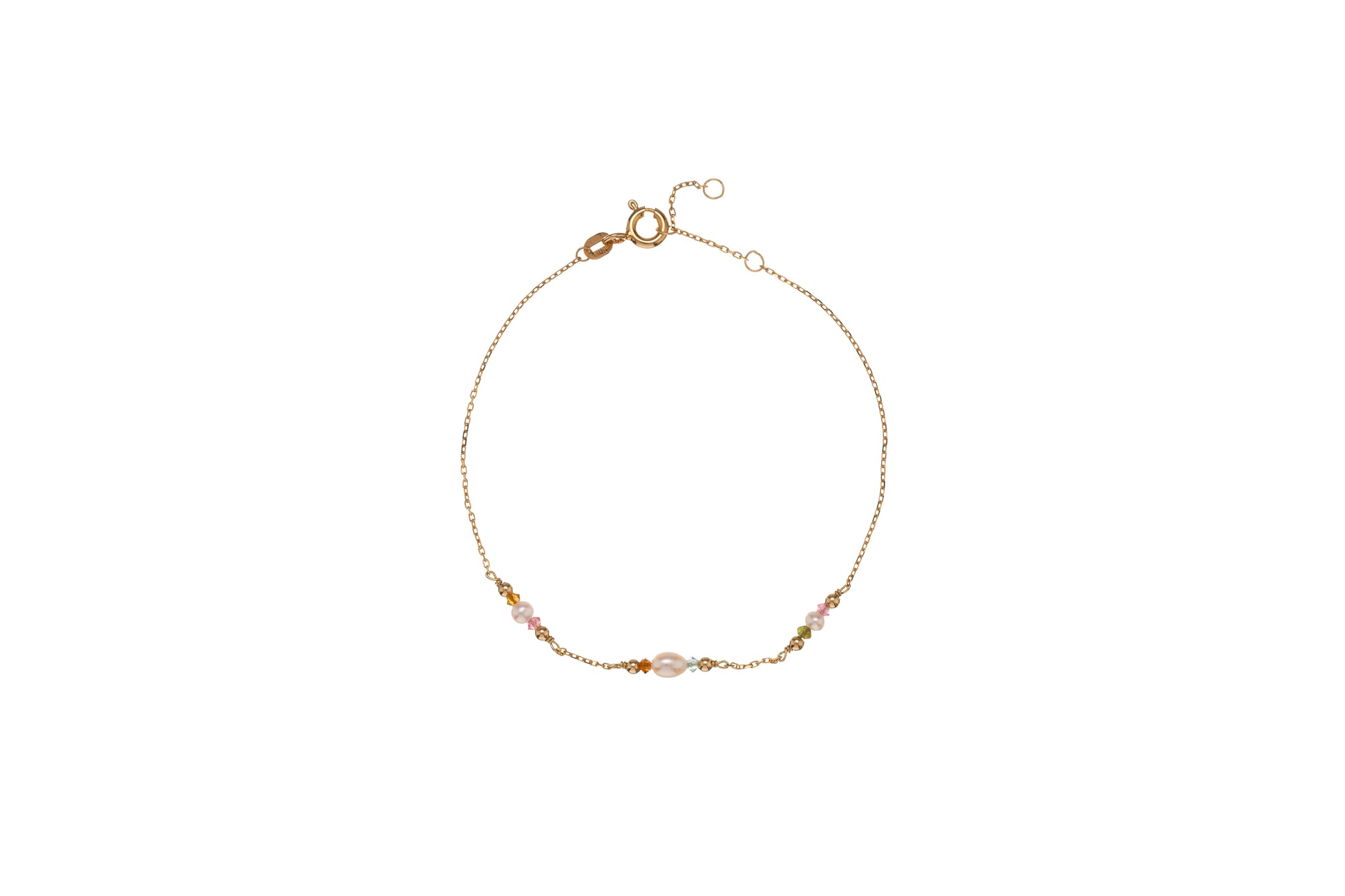 18 karátos arany karkötő turmalin kövekkel és gyöngyökkel