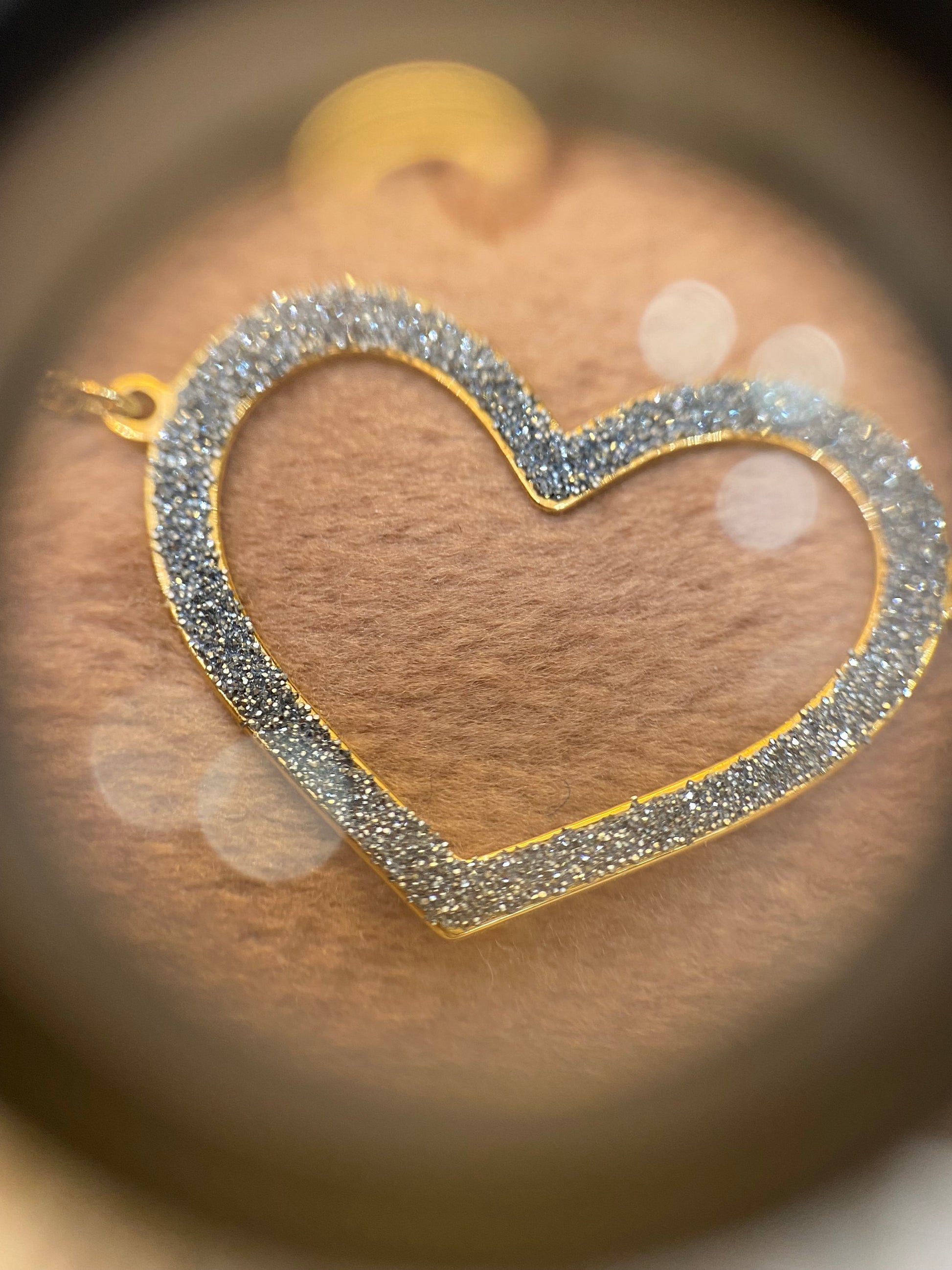 A szív mérete 17 x 15 mm, és arany szegély veszi körül.