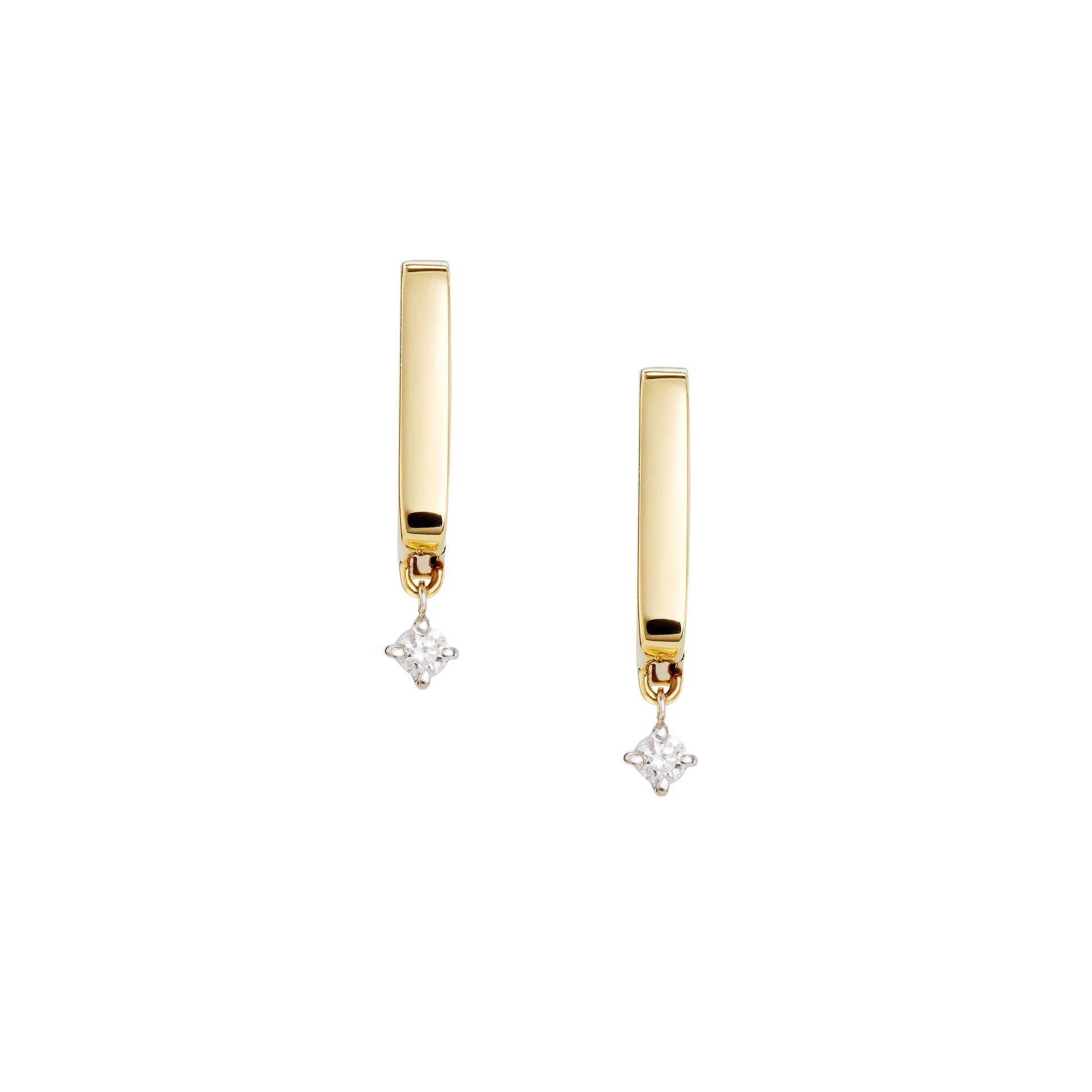 18 karátos arany, négyzet alakú fülbevaló patentzárral és 0,10 ct fehér gyémánttal.