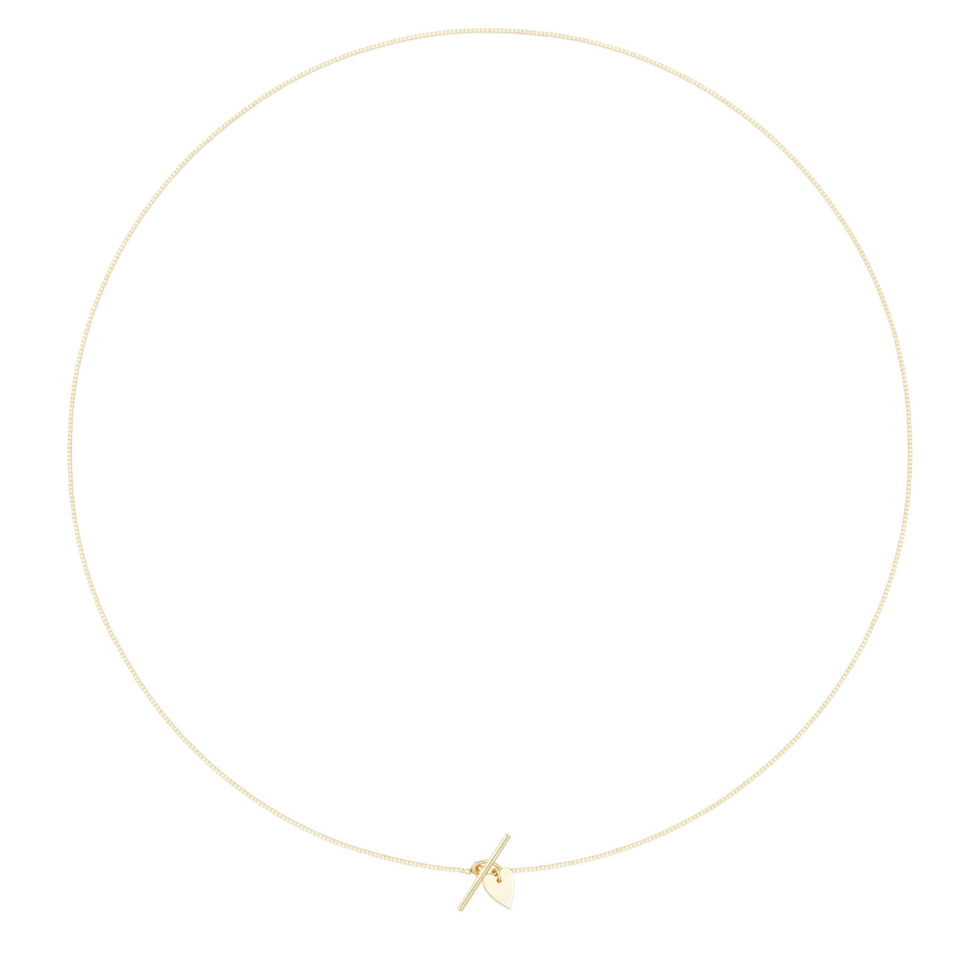 18 karátos sárga arany nyaklánc velencei kocka lánccal és T-alakú kapoccsal, szív alakú medállal.