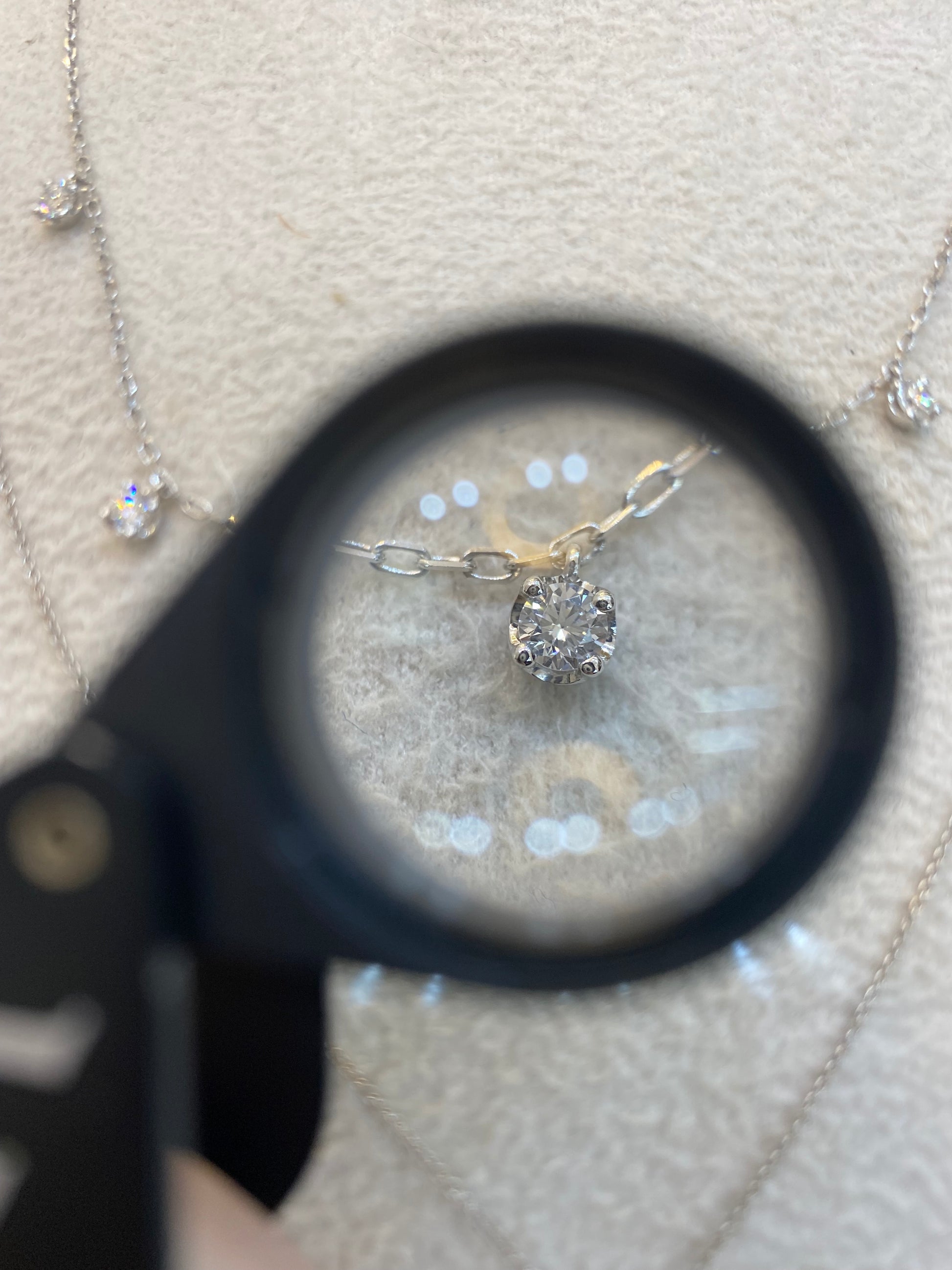 Fehér arany gyémánt köves nyaklánc, 5 elegáns brillel