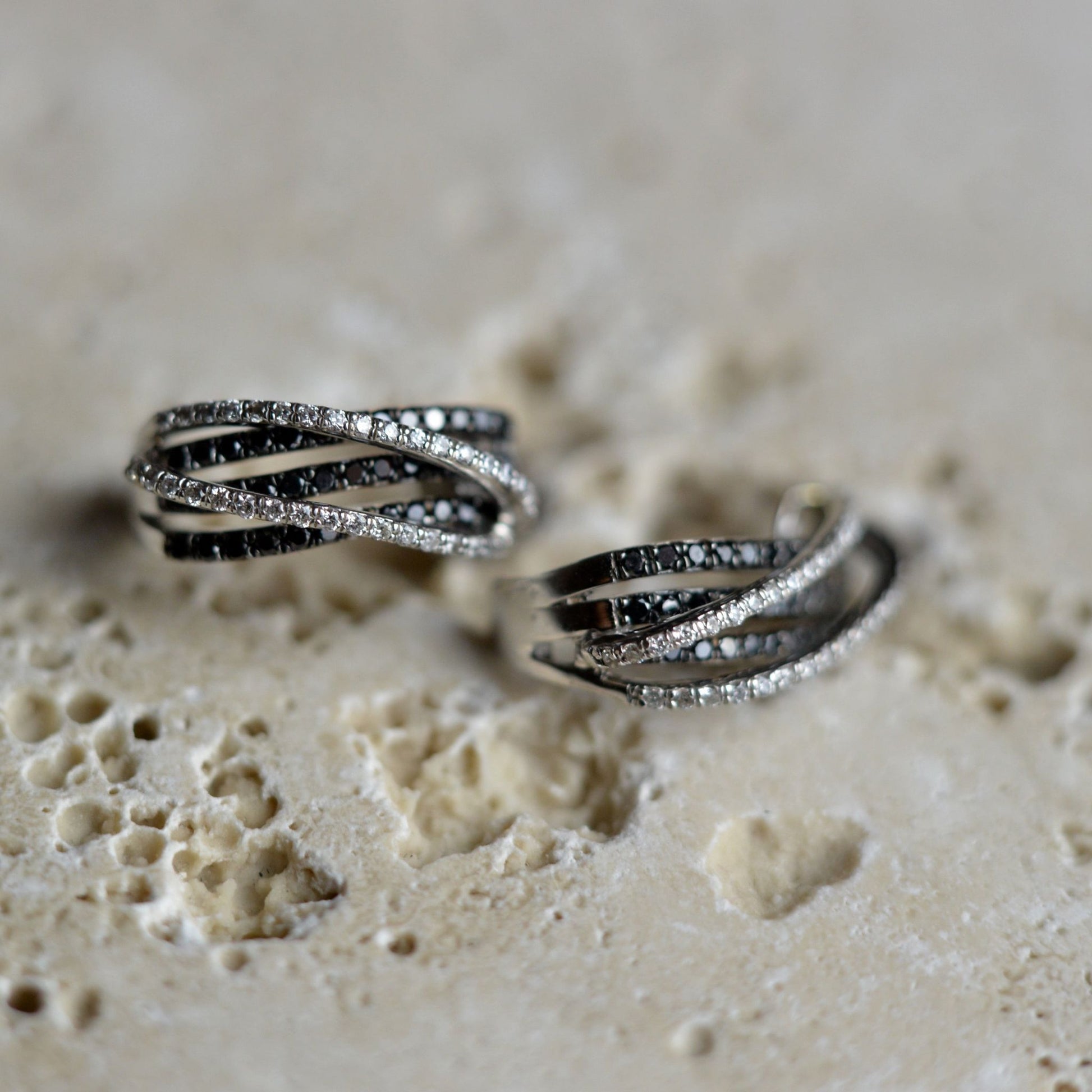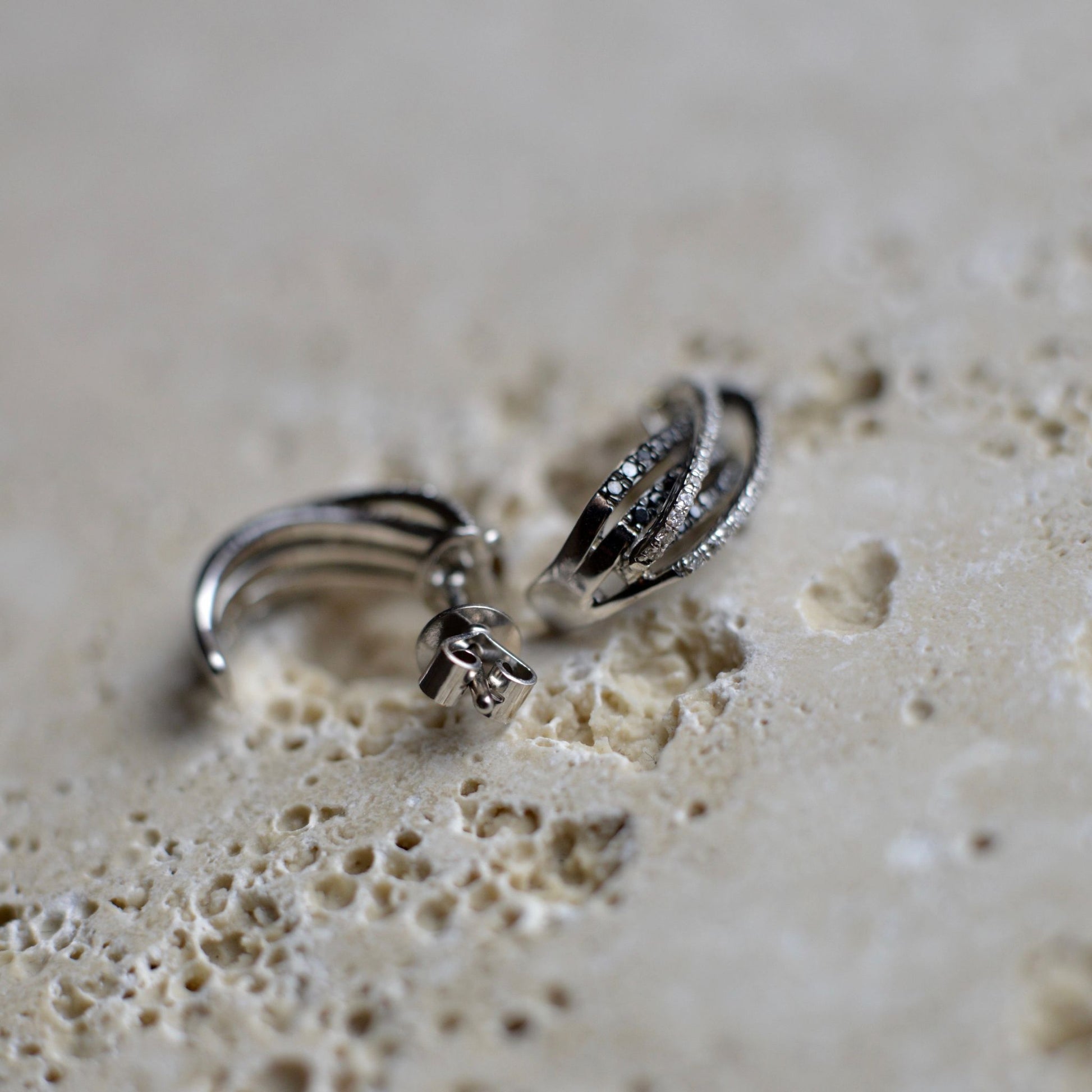 Fehér arany gyémánt fülbevaló, fekete gyémántokkal