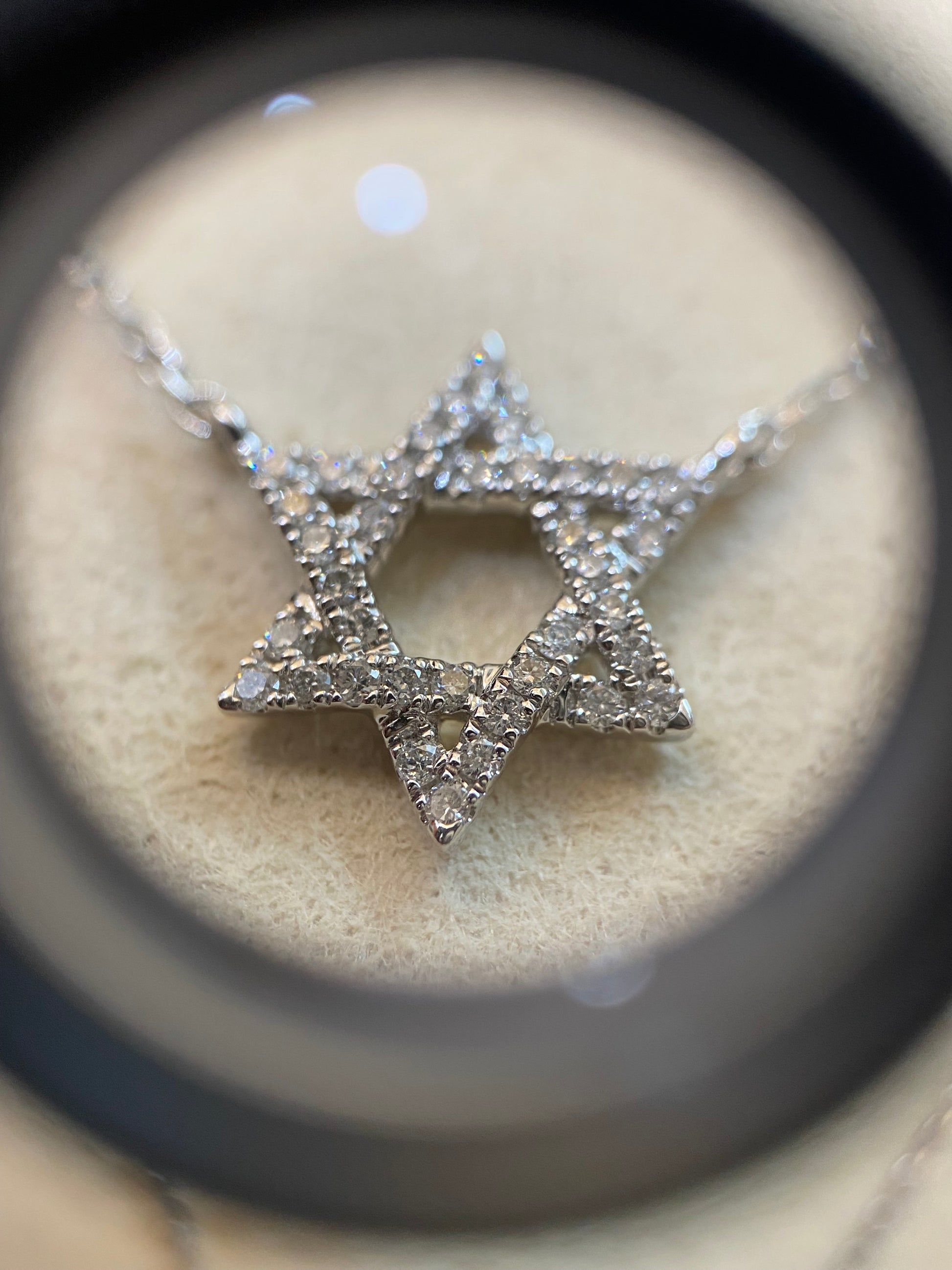 Fehér arany Dávid csillag nyaklánc, gyémánt kövekkel.