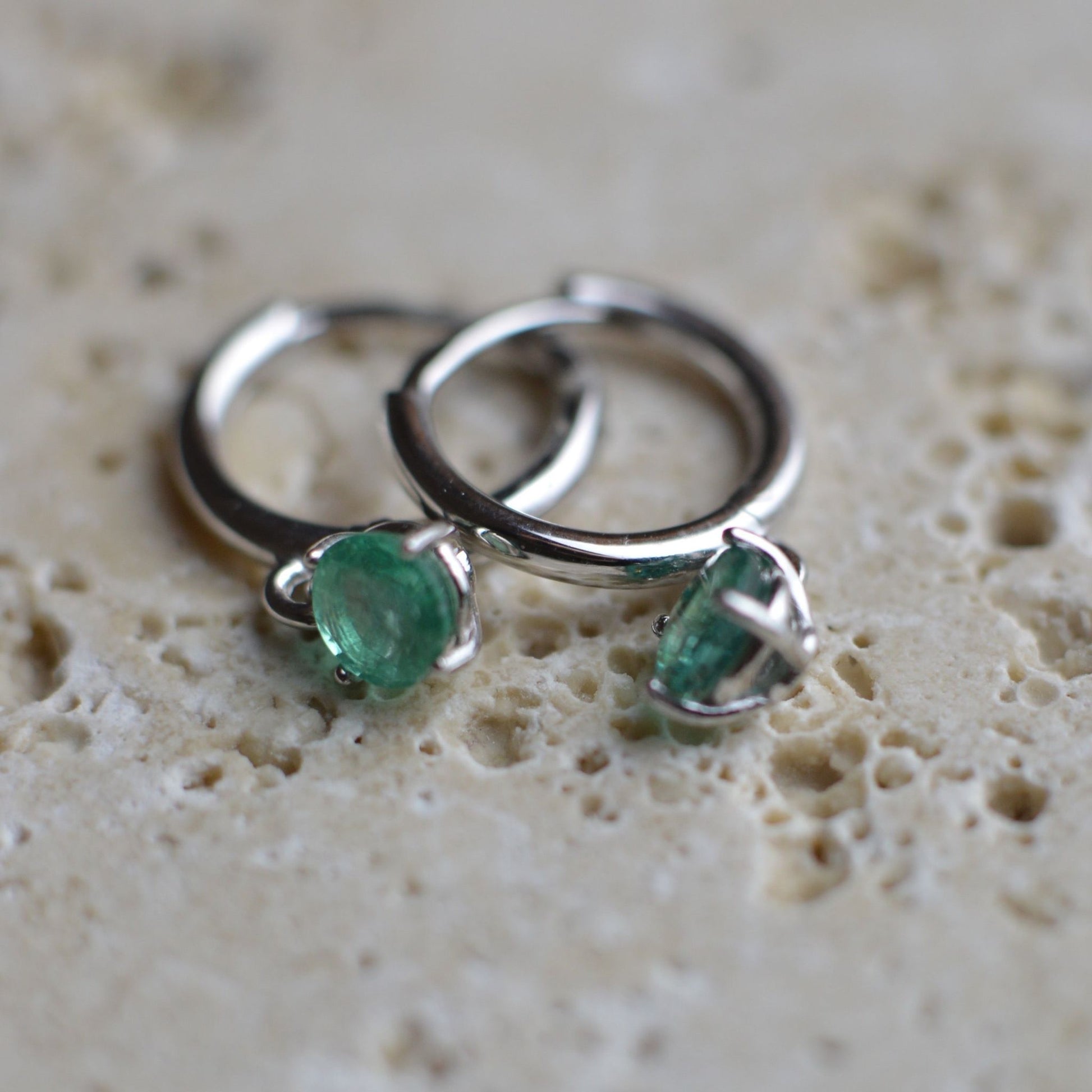 Fehér arany karika fülbevaló, kerek Smaragd kővel. Tökéletesen hozzá passzoló gyűrűnk is van, így akár szettben is megvásárolható.
