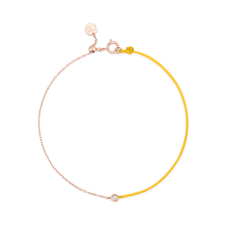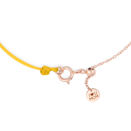 A sárga arany, rozé arany és fehér arany színekben elérhető karkötők biztosan minden ruhához és kiegészítőhöz passzolni fognak. A karkötő mérete változtatható. A madzag+lánc esetében a méret a láncon található csúszka segítségével vagy a madzag mozgatásával arányosan állítható.