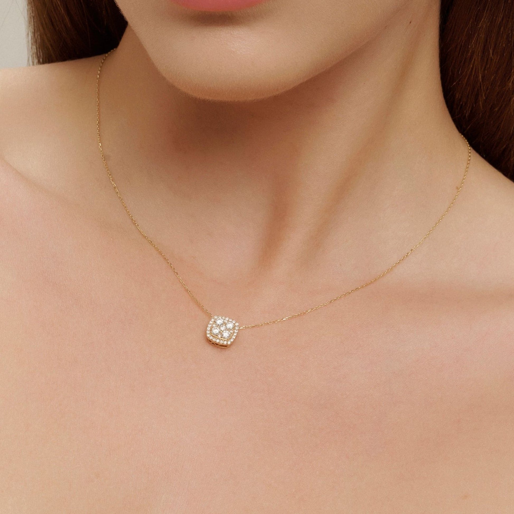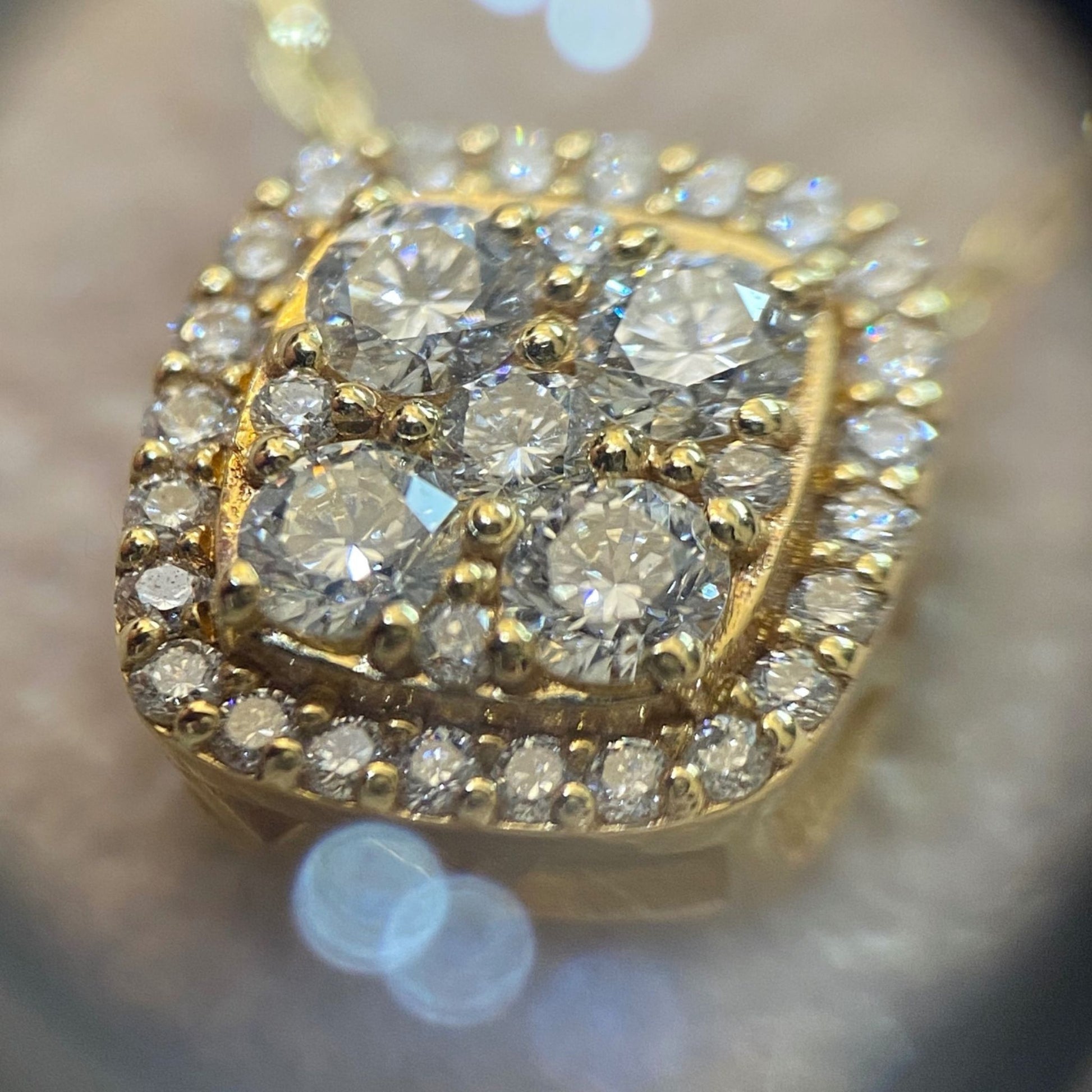 Sárga arany gyémánt nyaklánc, kisebb nagyobb brilliáns csiszolású gyémánttal. Exkluzív megjelenés, csodálatos ragyogás, ez maga a nyaklánc. Tökéletesen passzoló, hozzá illő fülbevalónk és gyűrűnk is van, így szettben is megvásárolható.