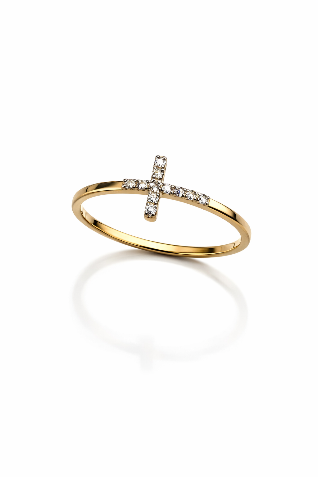 14 karátos sárga arany gyűrű gyémánt kereszttel.