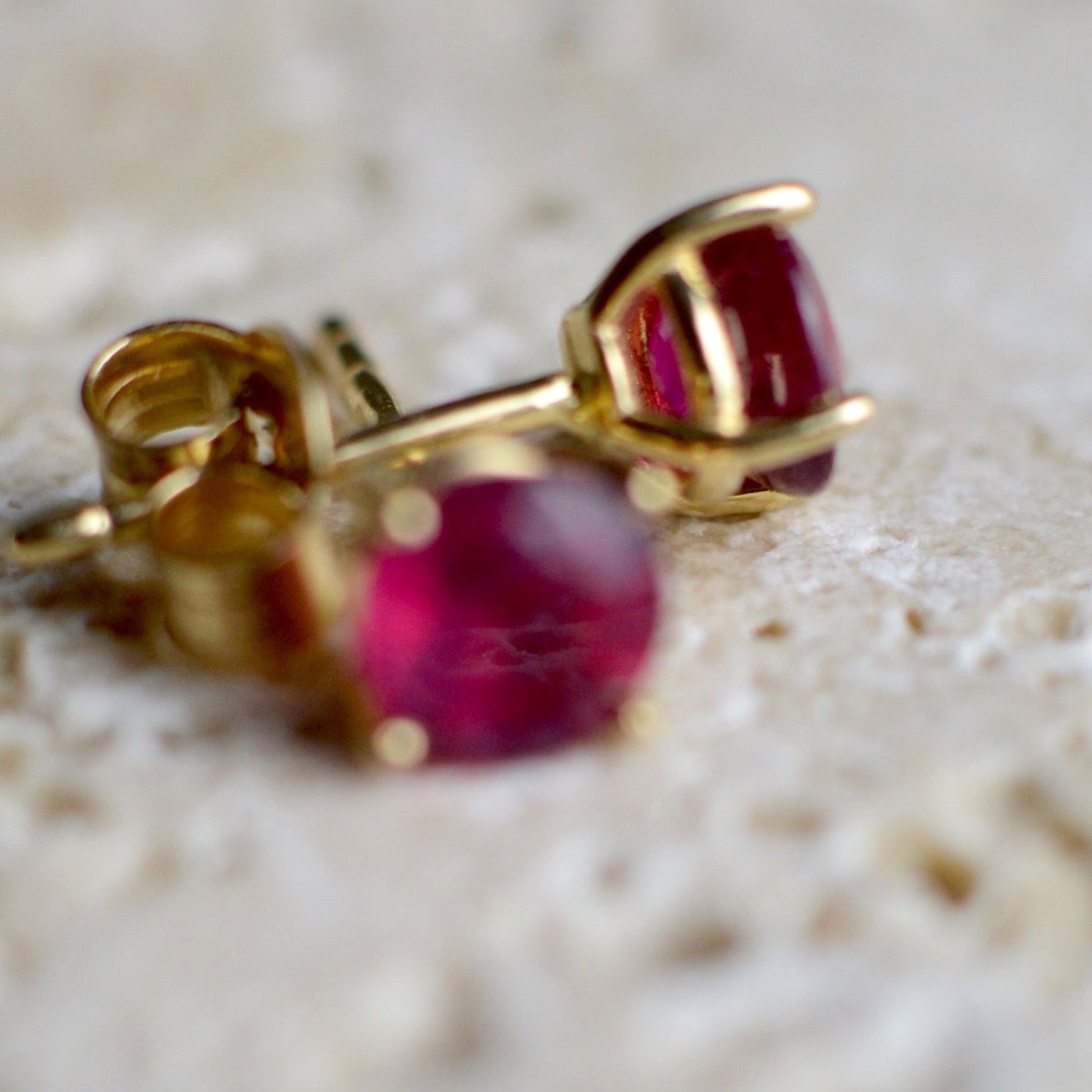 Sárga arany stekkeres fülbevaló, kerek Rubinnal. Tökéletesen hozzá passzoló gyűrűnk is van, így akár szettben is megvásárolható.