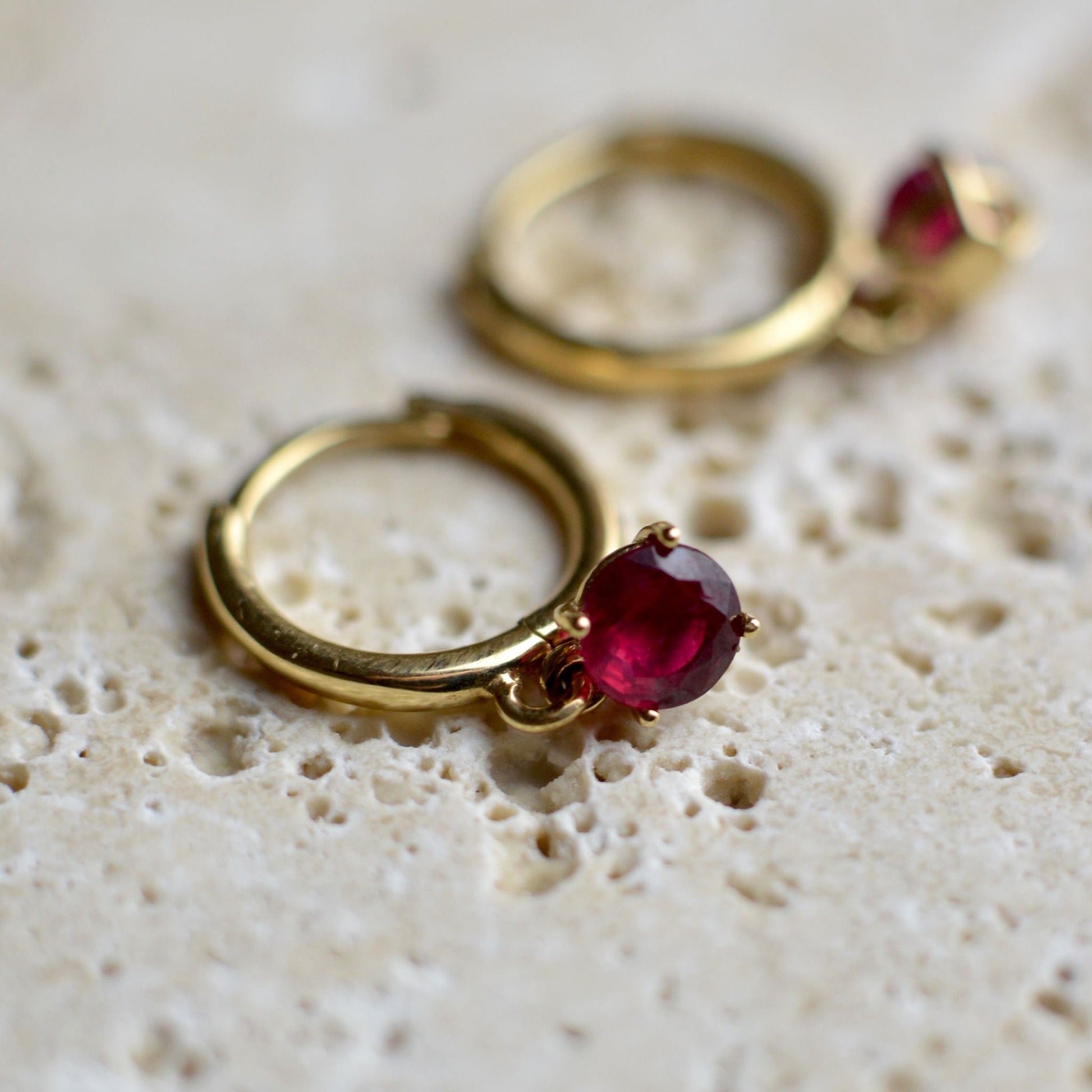 Sárga arany karika fülbevaló, kerek Rubinnal. Tökéletesen hozzá passzoló gyűrűnk is van, így akár szettben is megvásárolható.