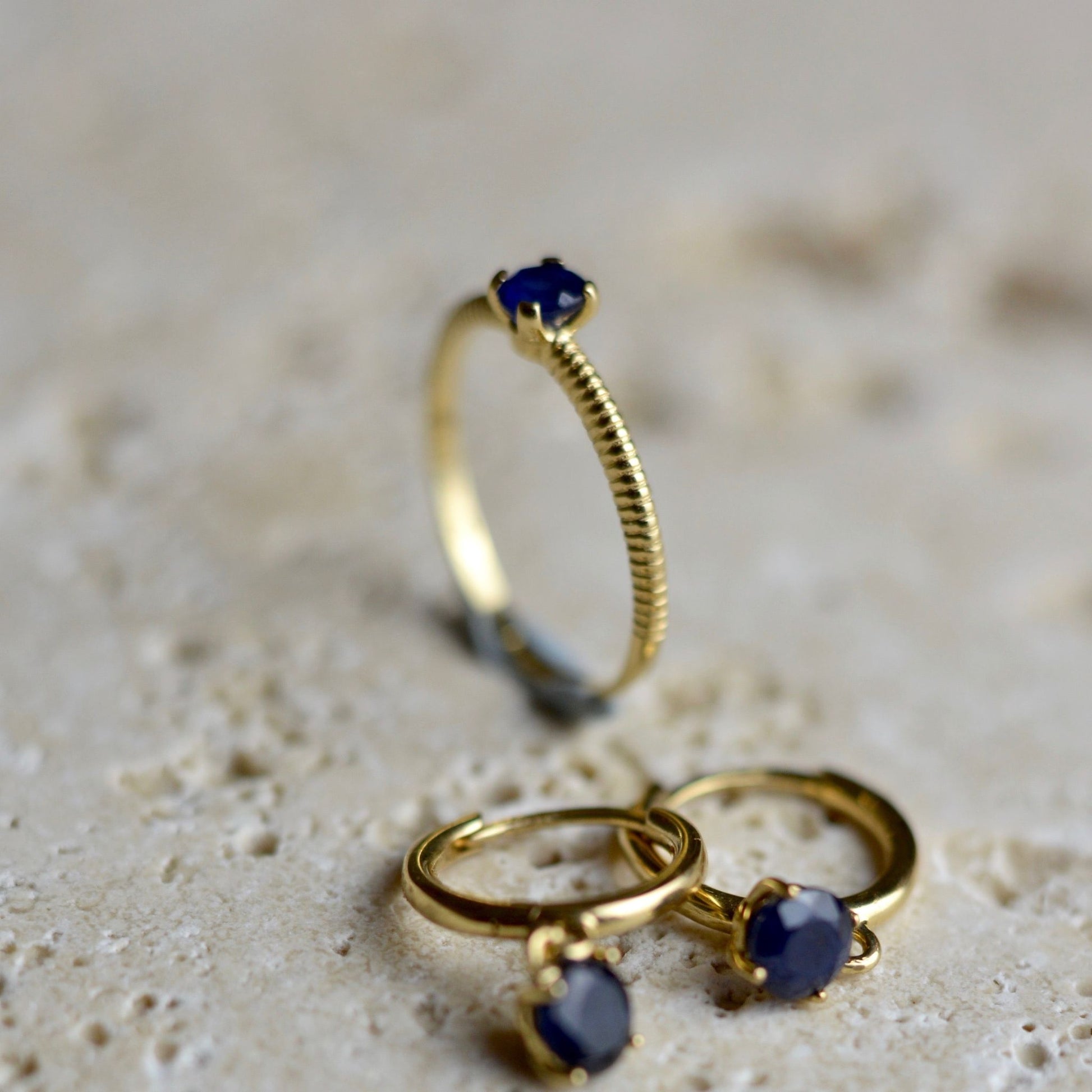 Sárga arany gyűrű, kerek Zafírral. Tökéletesen hozzá passzoló fülbevalónk is van, így akár szettben is megvásárolható.