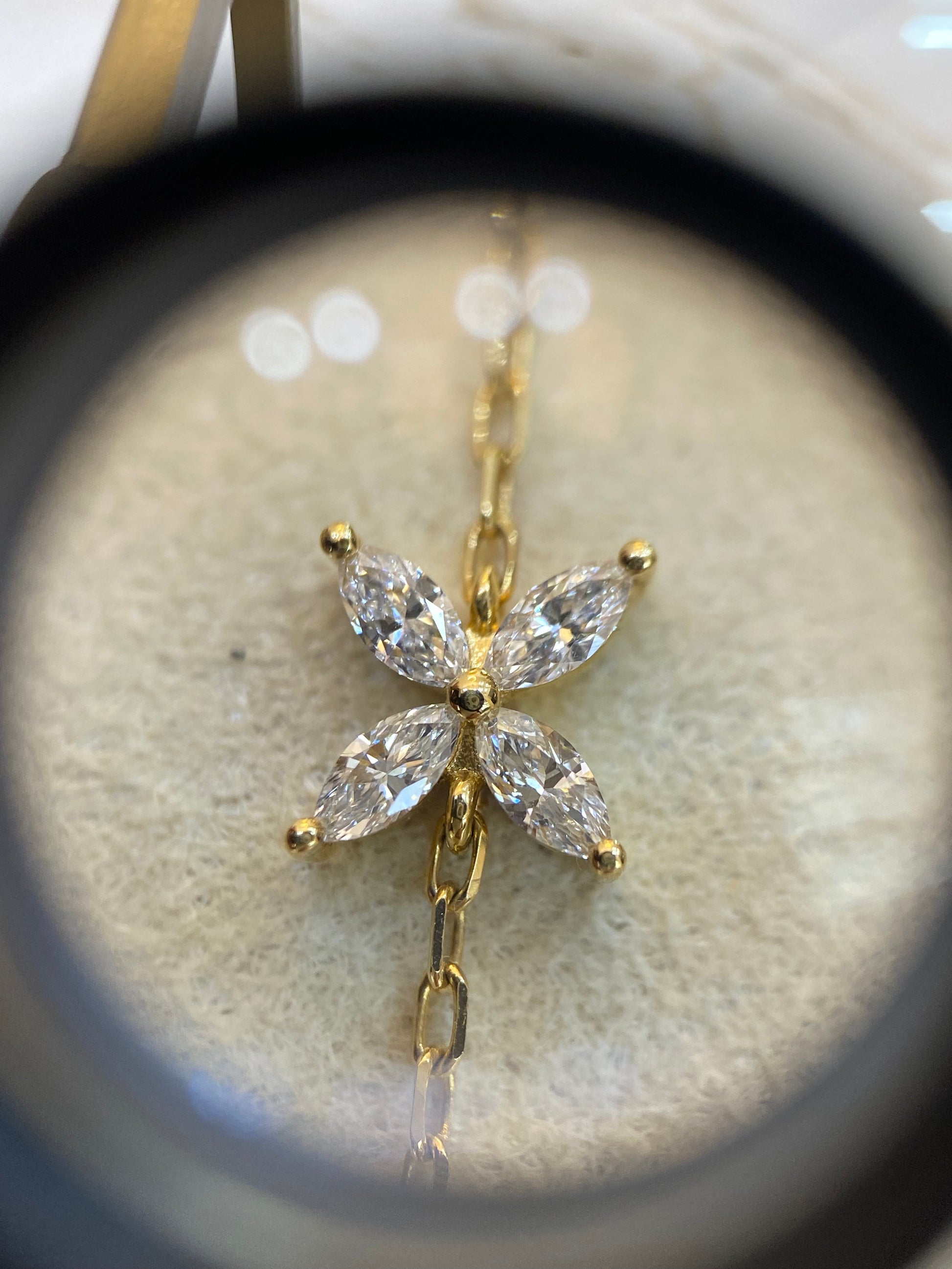 Sárga arany virág karkötő, gyémánt kövekkel.